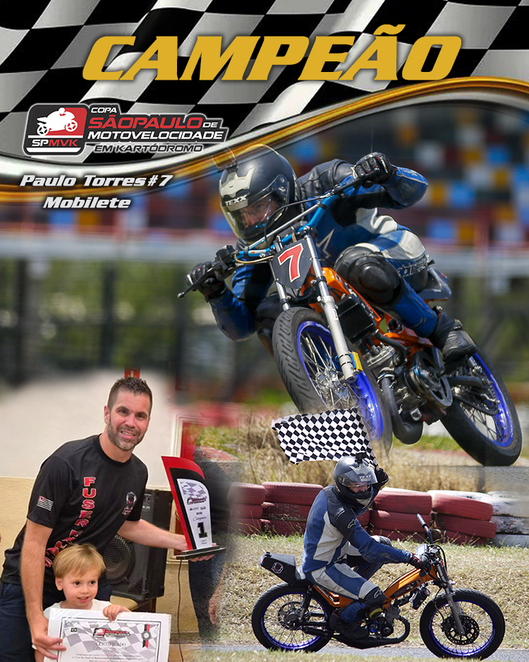 Paulo Torres – Minha evolução nas competições foi rápida. Logo nas primeiras corridas já figurava entre os primeiros colocados, porém minha primeira vitória só veio em 2014, e o primeiro campeonato em 2016. Depois disso, fui campeão da JT72, da King, vice-campeão brasileiro, entre outros títulos. Atualmente estou competindo em outra categoria, a 250cc, dando continuidade à minha evolução como piloto.